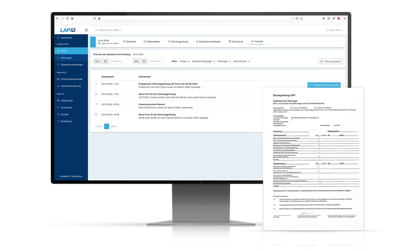 Im Rahmen der Prüfung wird das Fahrzeug auf Sicherheitsmängel kontrolliert. Dabei kann eine Werkstatt oder ein Servicepartner der Wahl beauftragt werden. Die Ergebnisse werden, dann in einem schriftlichen Prüfbericht festgehalten, der bis zur nächsten Prüfung aufbewahrt werden muss – idealerweise digital. Nach erfolgreicher Prüfung erhält das Fahrzeug eine Prüfplakette und ein elektronisches System wie das von LapID unterstützt bei der Verwaltung, erinnert automatisch an fällige Termine und speichert alle Unterlagen rechtssicher und revisionssicher in der digitalen Fahrzeugakte.